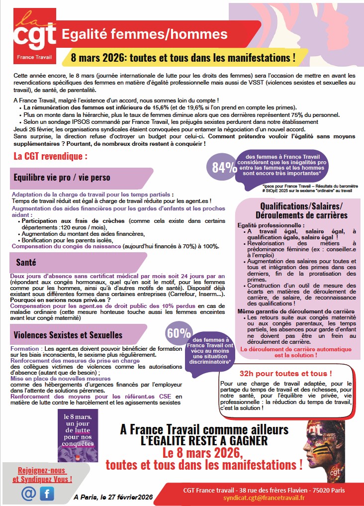 8 mars 2026 – Journée internationale de lutte pour les droits des femmes